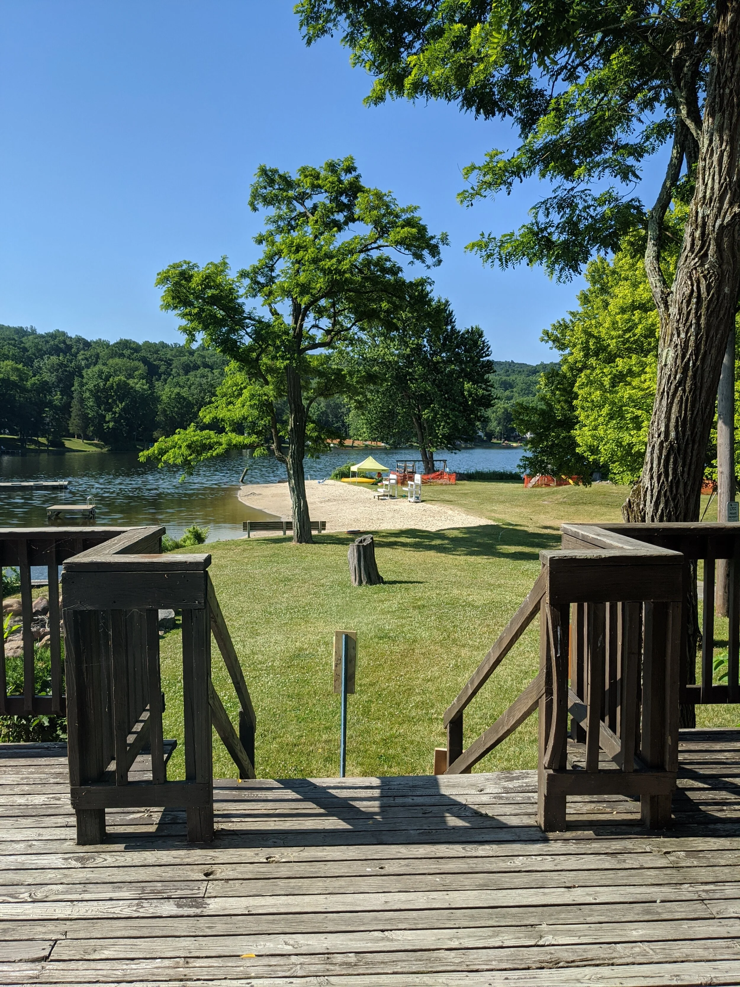 The lake can be fished from the shore in several spots and by boat (electric motor only) and ice fishing in the winter! There are areas for boats on either side of the lake, and a boat ramp located at beach #2.